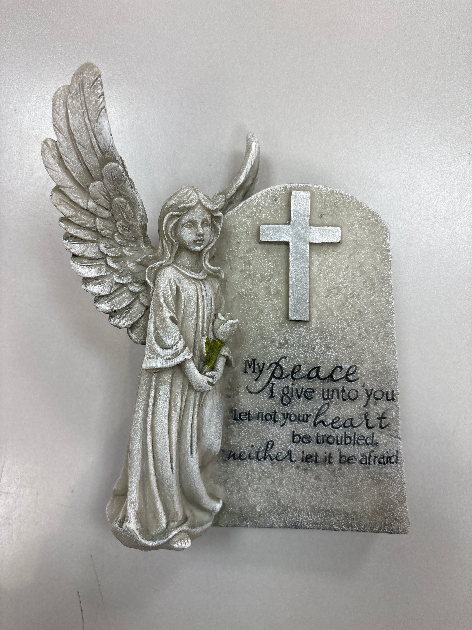 Angel decor with cross that says my peace I give them to you let not your heart be troubled and neither let it be afraid