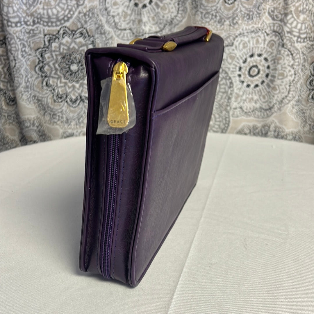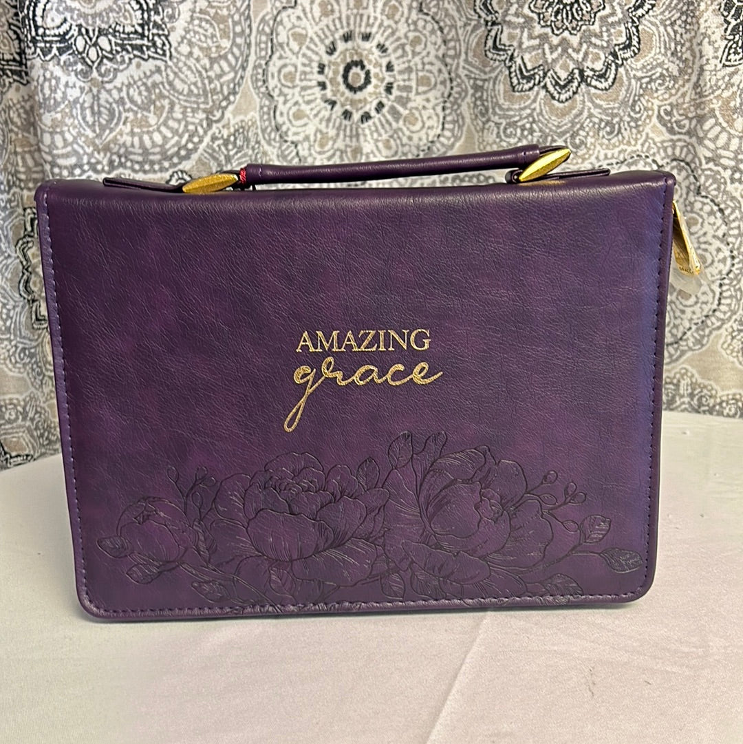 This faux leather Bible cover features Amazing Grace and can fit most standard-sized bibles and books up to 7 x 10 1/8 inches. With its durable material and inspirational message, it is the perfect accessory for protecting and carrying your bible with you wherever you go.