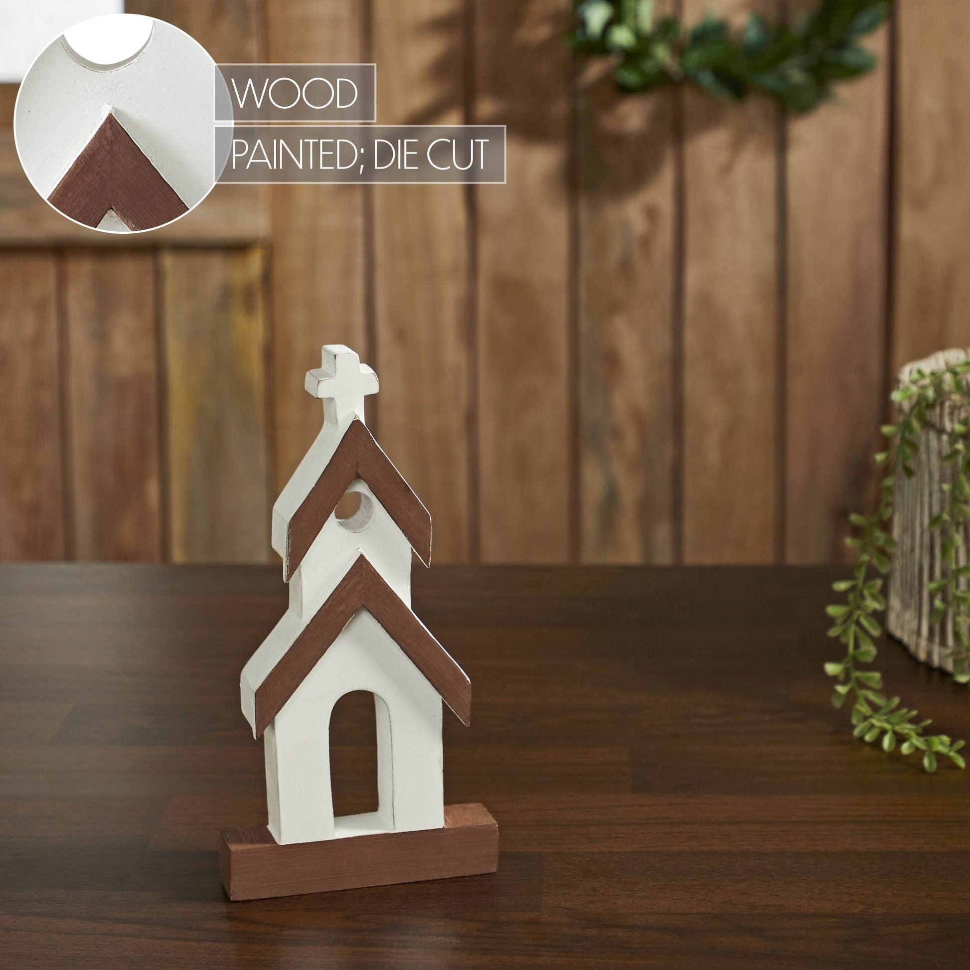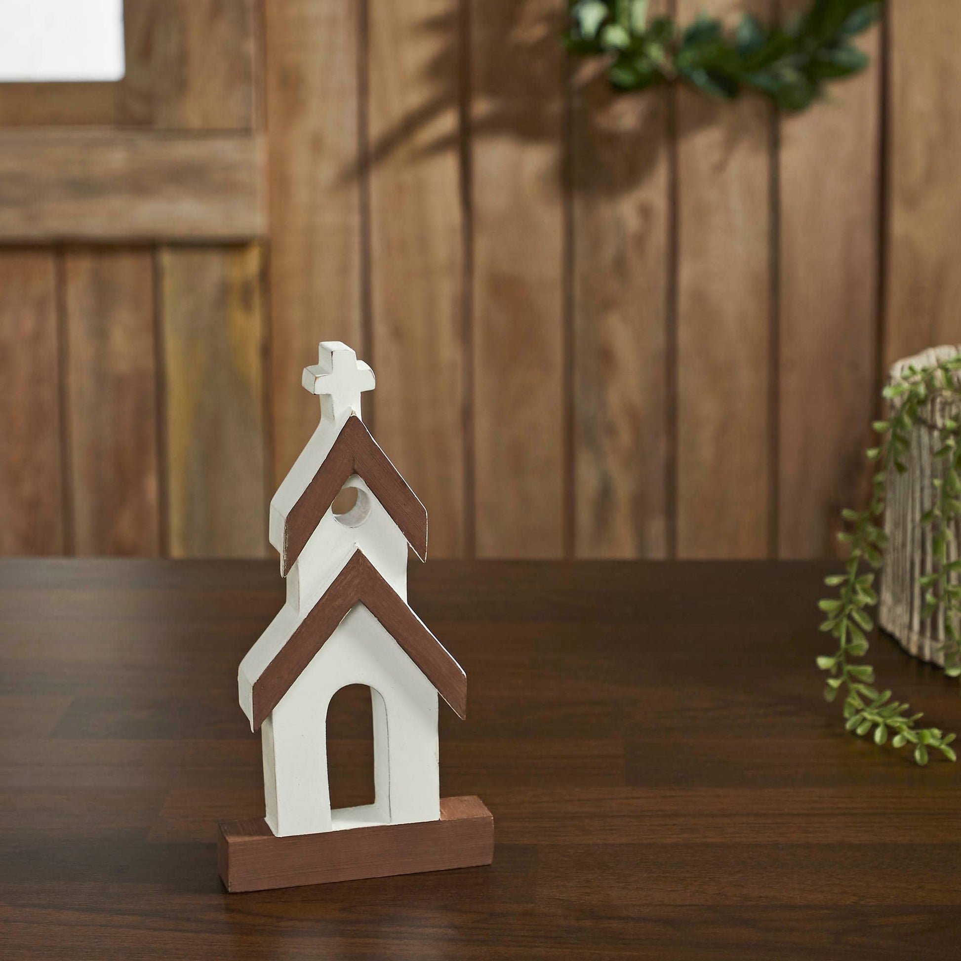 Add a touch of rustic charm to your home decor with the VHC Brands Tropical Wood Brown Roof White Church Figurine. Crafted from tropical wood, this figurine embodies the quaint elegance of an old-style country church. Measuring 8 inches in height, 4 inches in width, and 1 inch in depth, it serves as a delightful accent piece for tables and shelves, infusing your indoor decorations with vintage country church allure. The bright white and deep brown color scheme of this figurine complements farmhouse and country decor styles, evoking a sense of warmth and nostalgia. Its distressed appearance adds to its authenticity, creating the illusion of a weathered structure steeped in history and tradition.