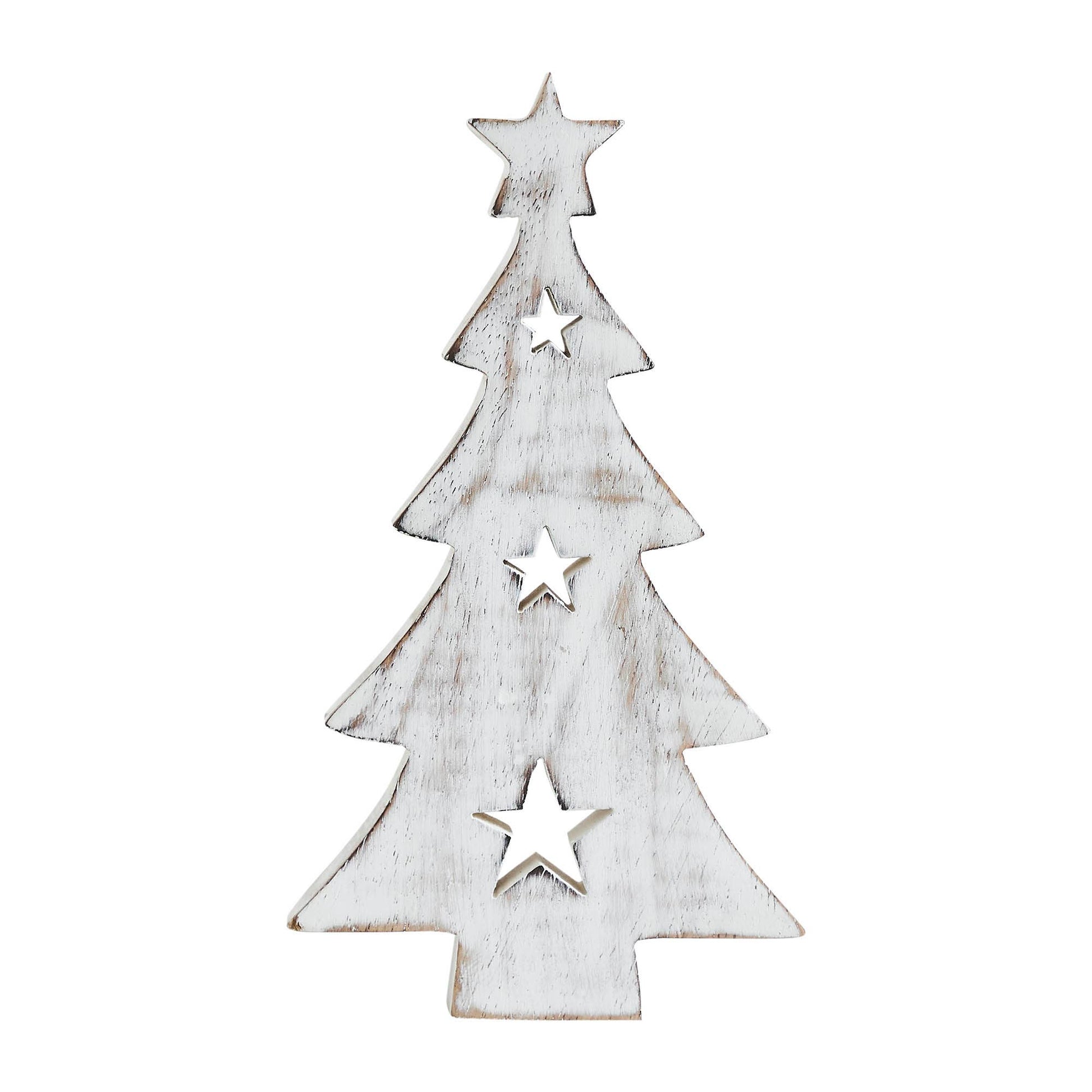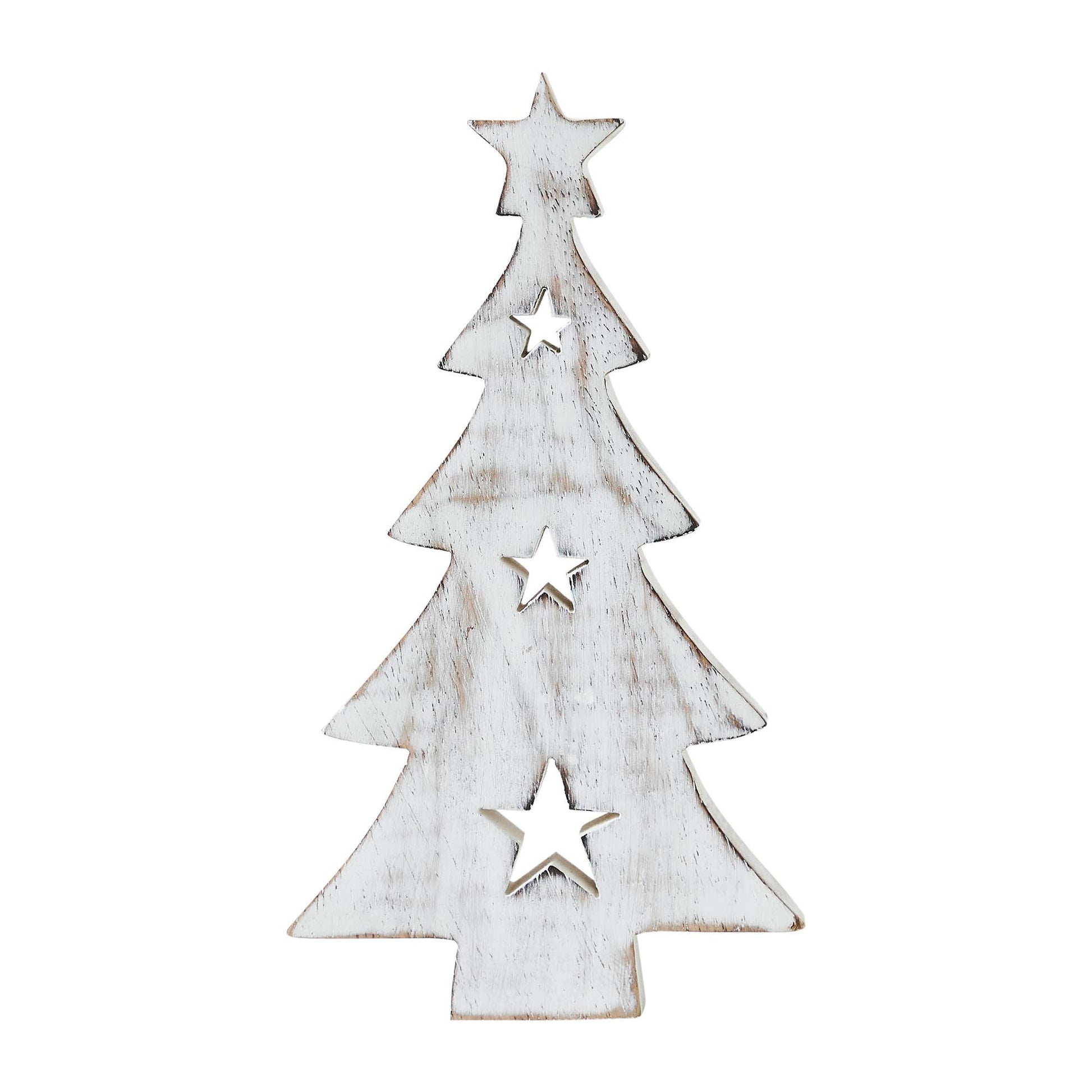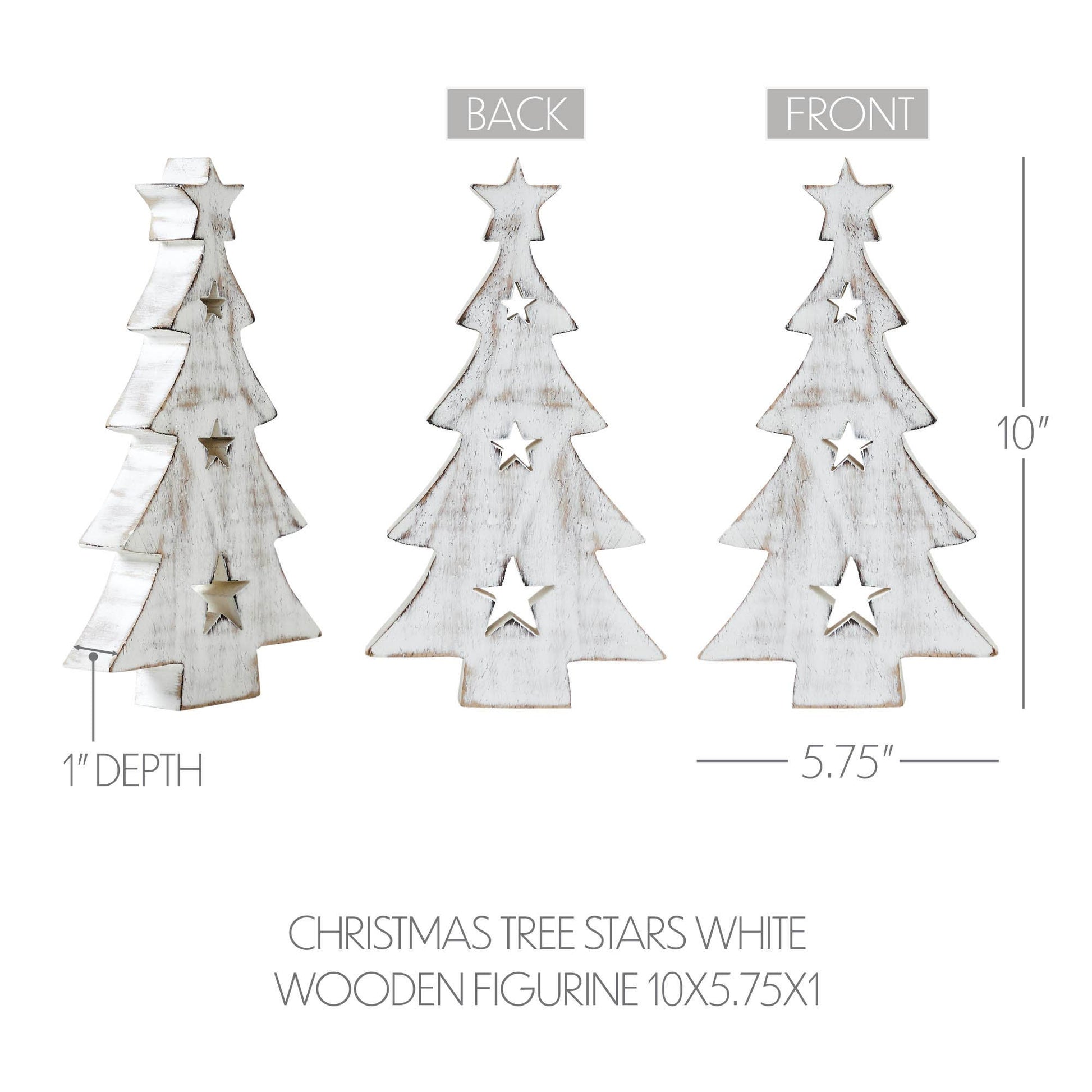 Christmas Tree w/ Stars White Wooden Figurine 10x5.75x1