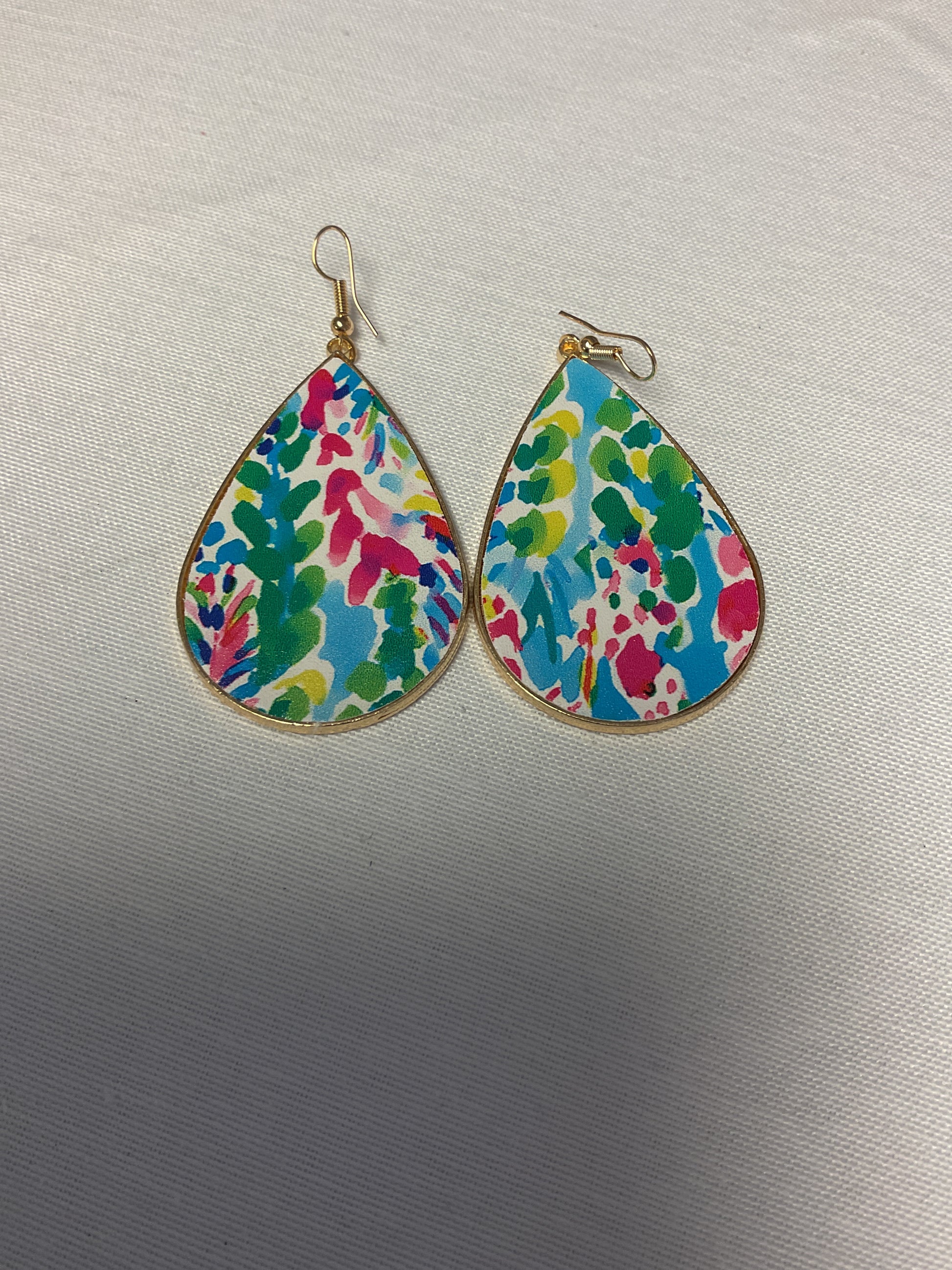 These elegant earrings feature a gold plating and a colorful splatter design.