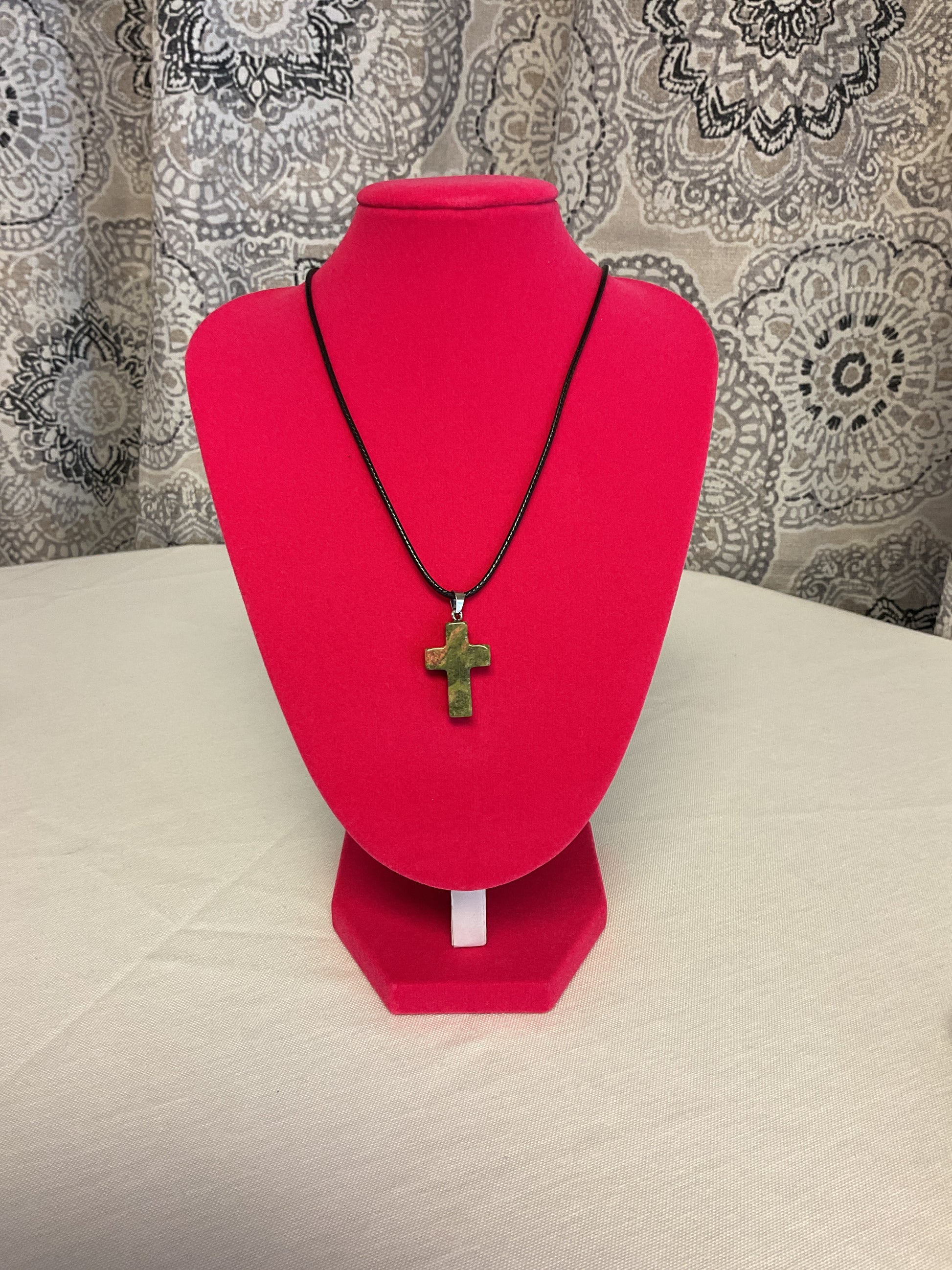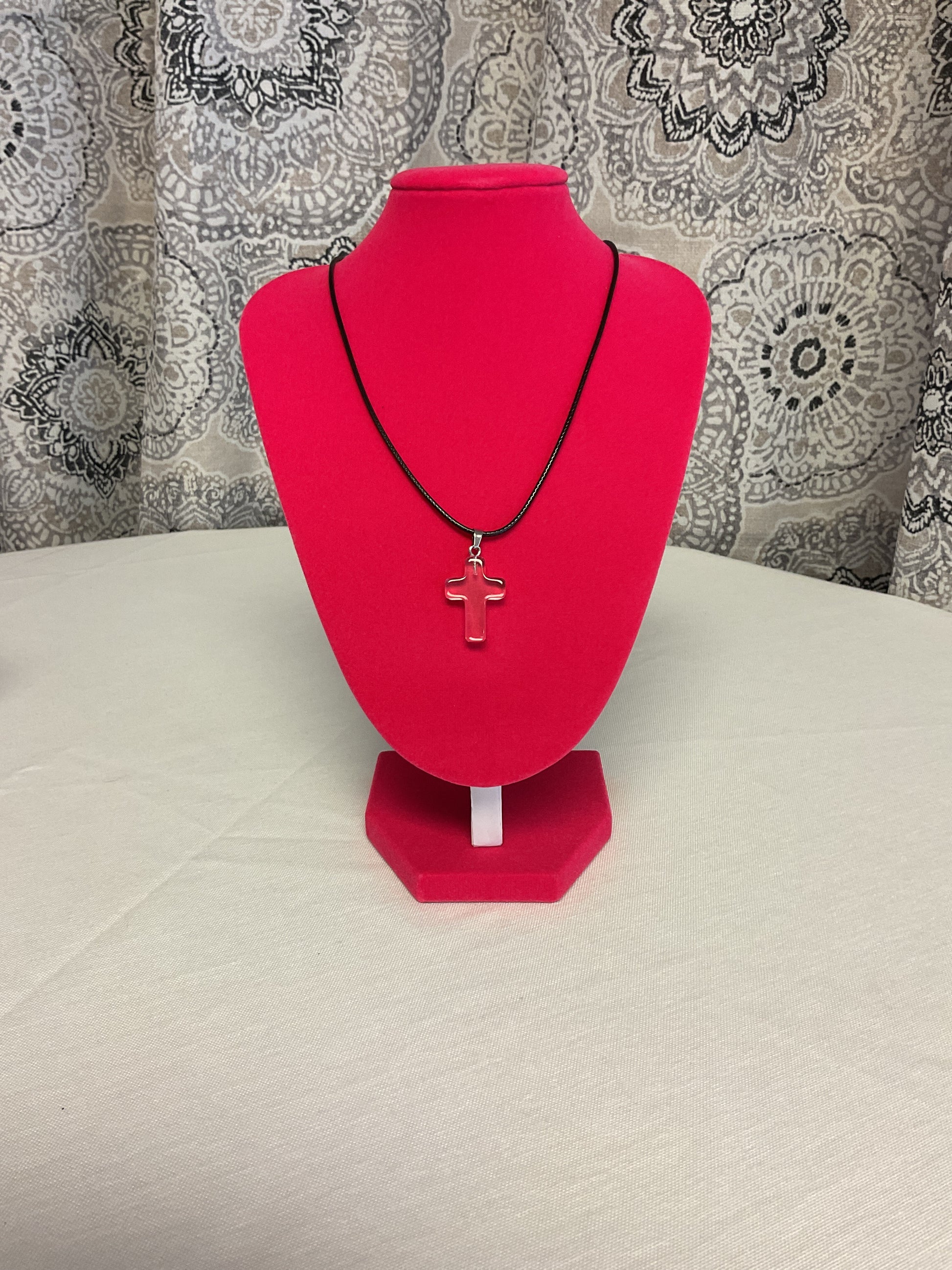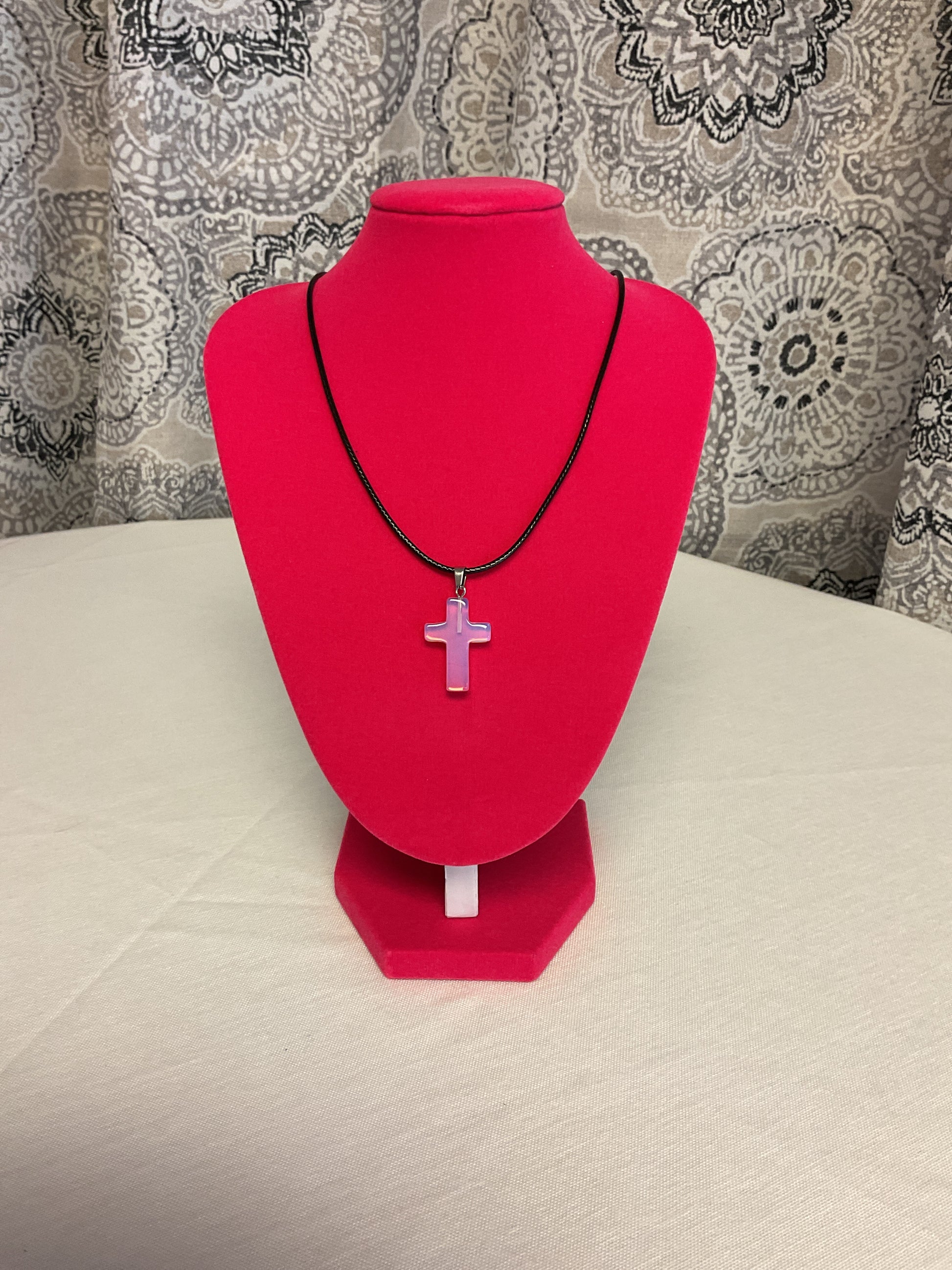 Our selection features resin cross necklaces in various colors, each measuring 18" with a 2" extender.