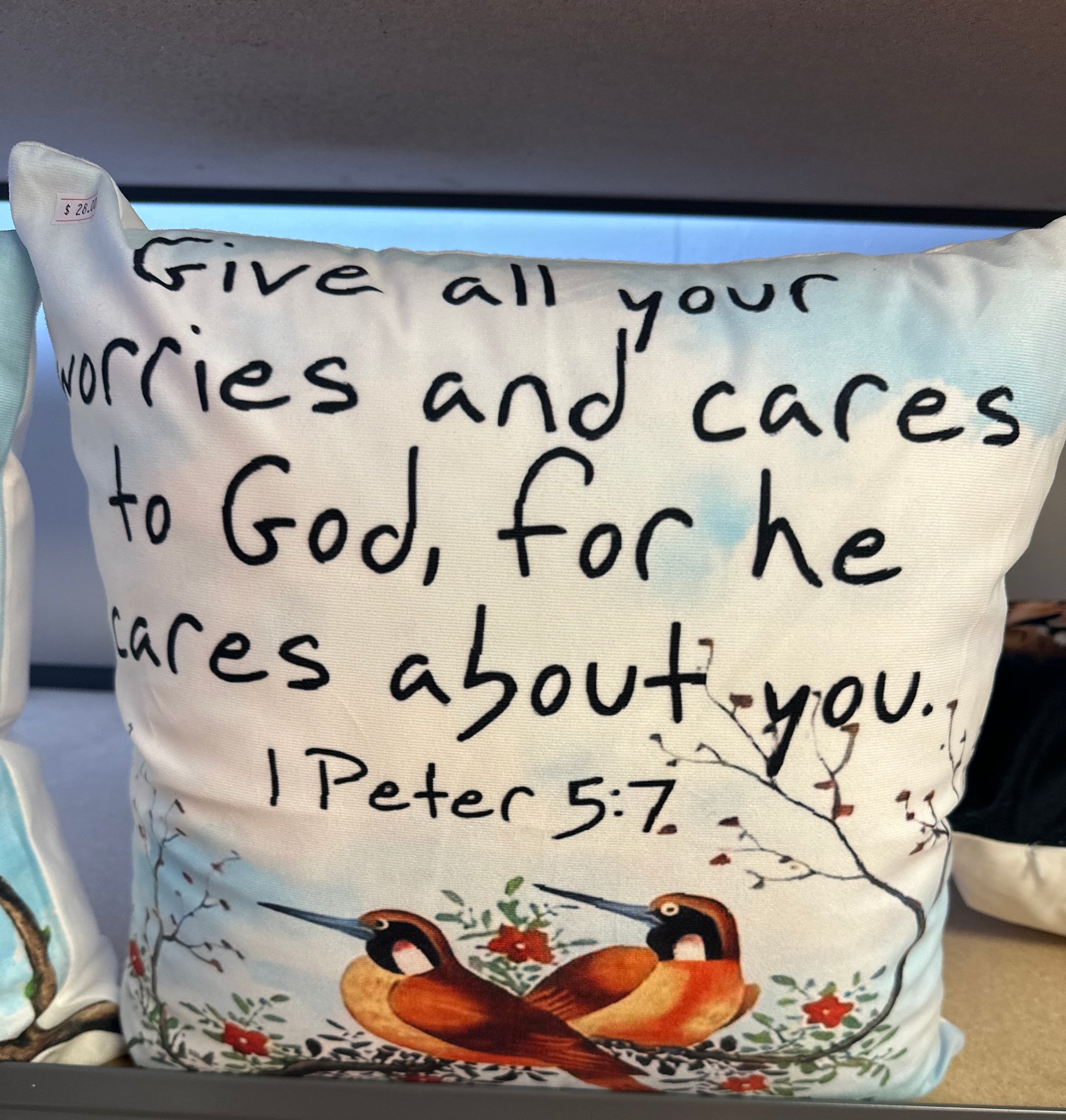 Lay all your anxieties and burdens on God Pillow, as 1 Peter 5:7 reminds us to do. This 16x16 inch pillow serves as a comforting reminder to trust in a higher power and release all worries and cares.