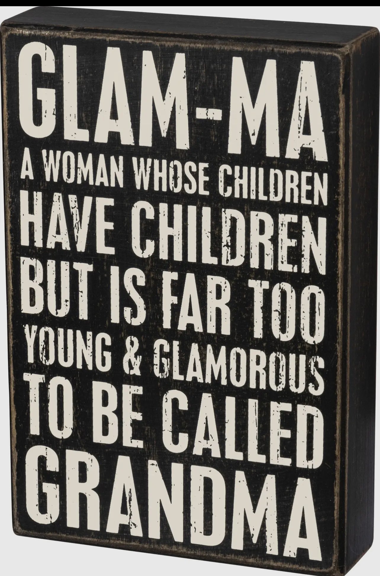 Looking for a gift that shows your love and appreciation for your grandmother? This Glamma To Young To Be Called Grandma Box Sign is the perfect choice. Measuring at 1.8 x 9 x 6 inches, it's a thoughtful and charming addition to any home.