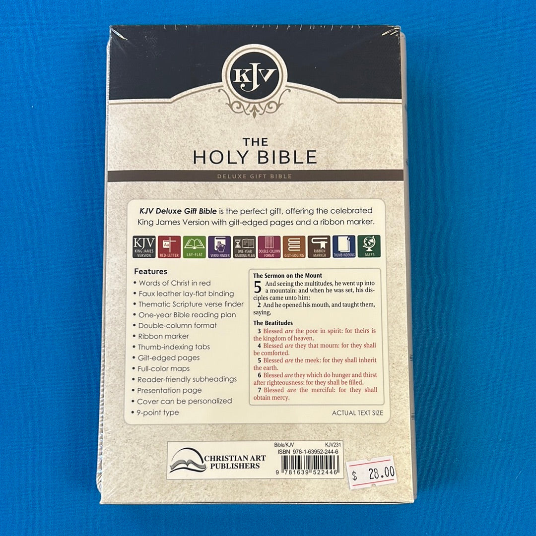 The KJV Holy Bible Deluxe Gift Bible is a professional-grade edition that measures 51/2 x 81/2 inches, making it a convenient size for personal or group study.