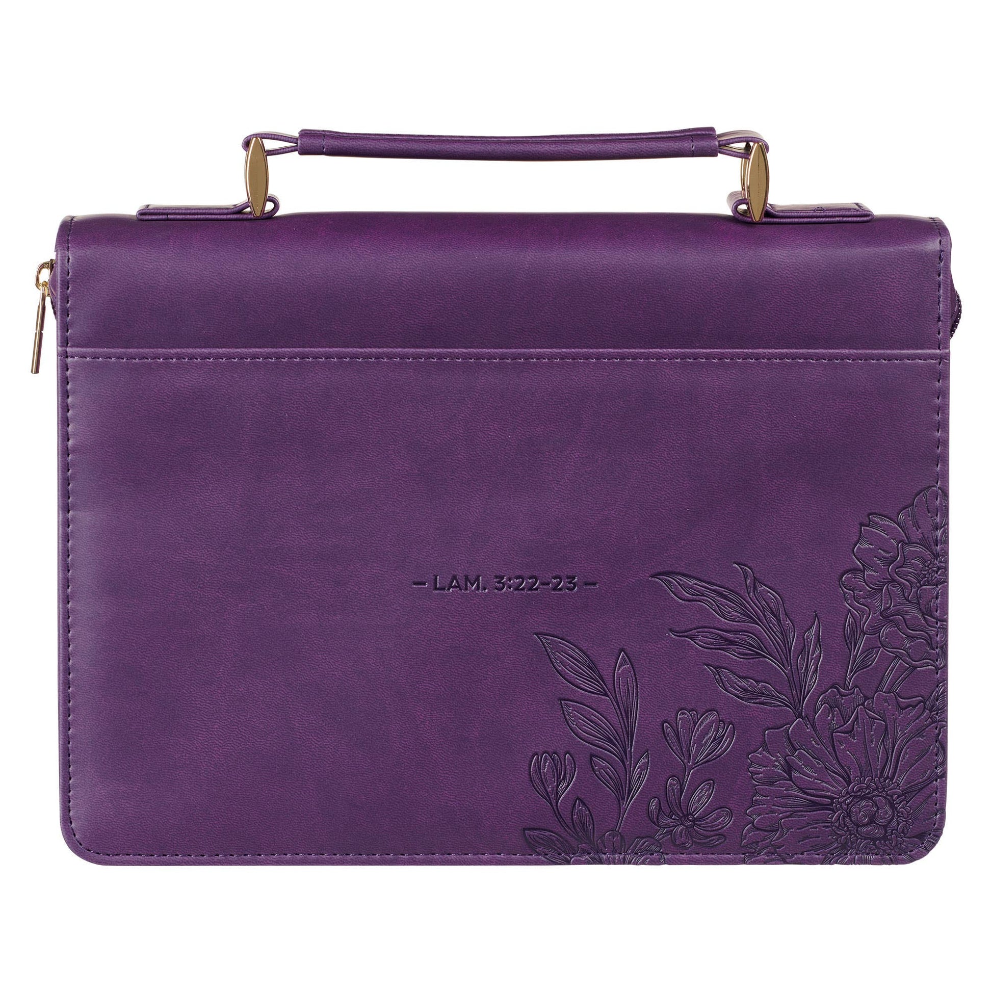 The New Mercies Every Morning Purple Floral Fashion Bible Cover is a testament to God's endless mercy, making it the perfect case to protect your Bible.