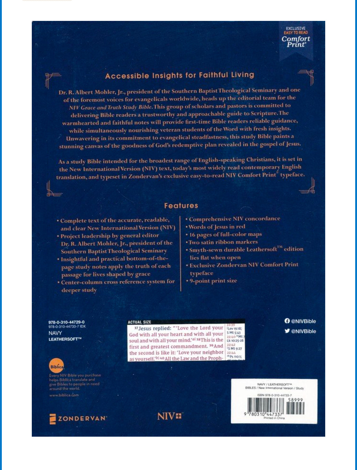 NIV Grace and Truth Study Bible, Comfort Print--soft leather-look, navy (indexed