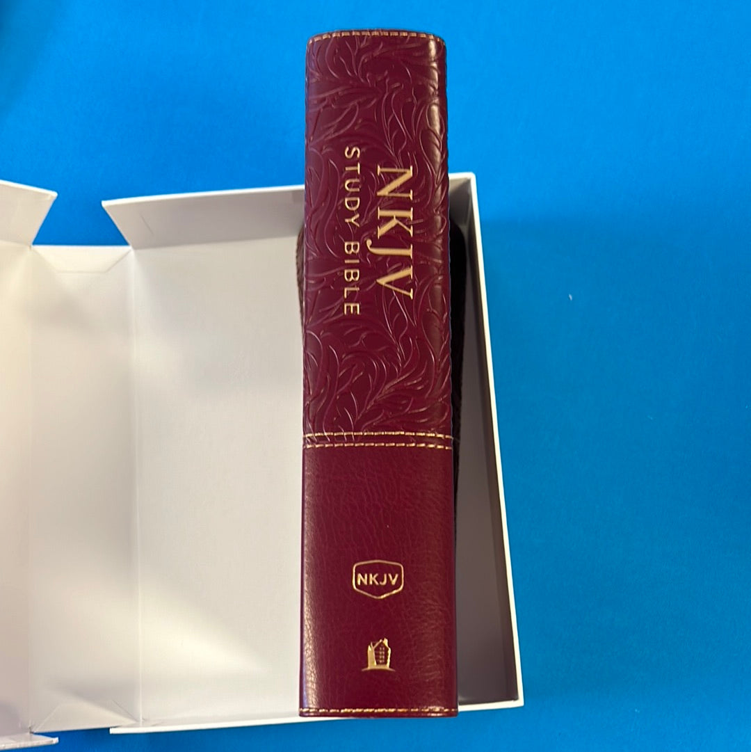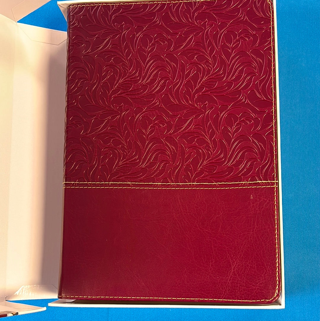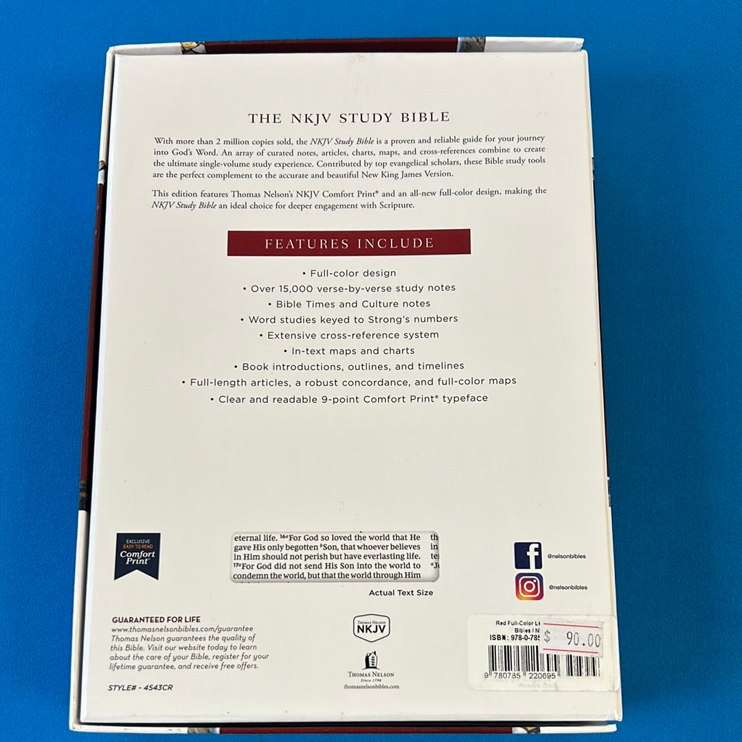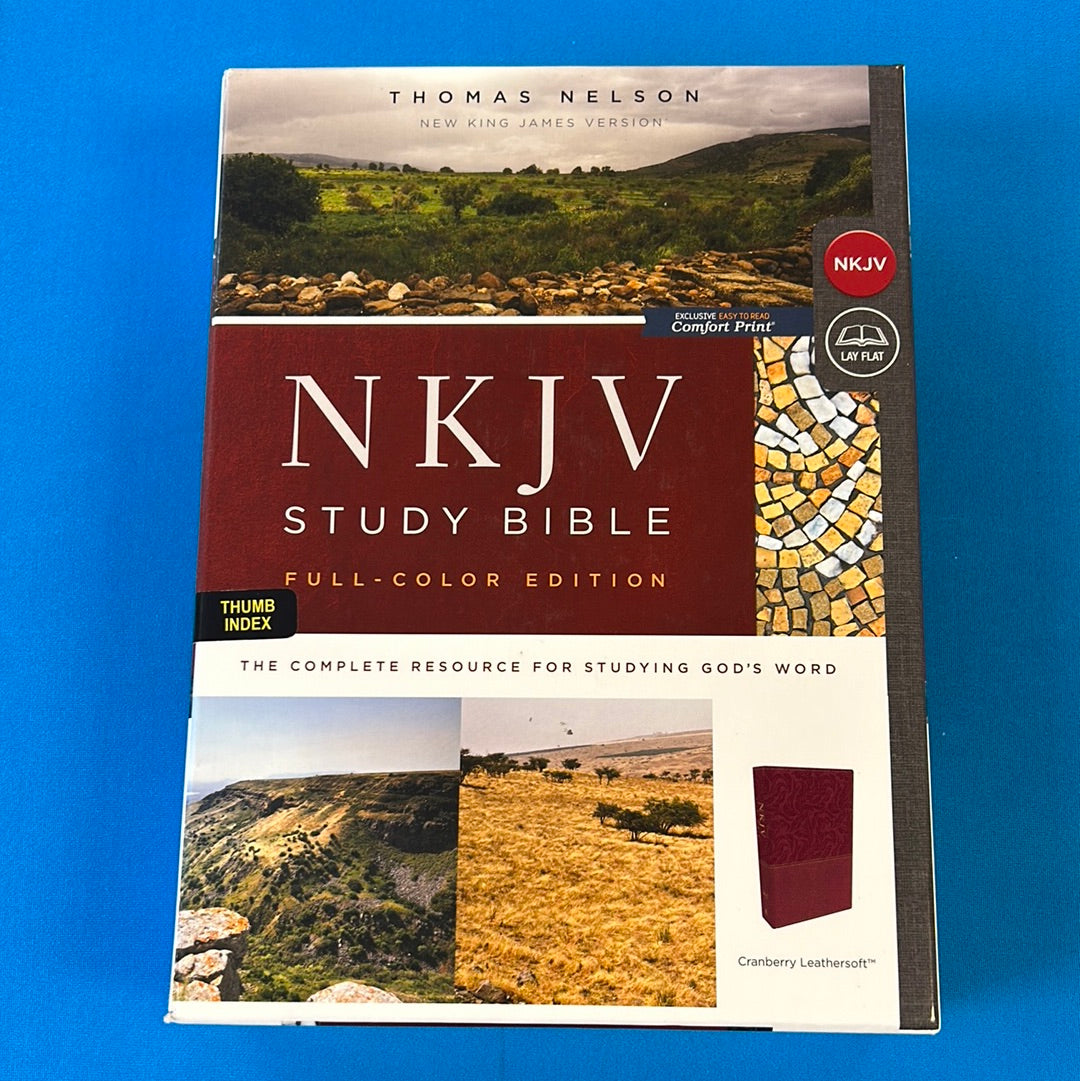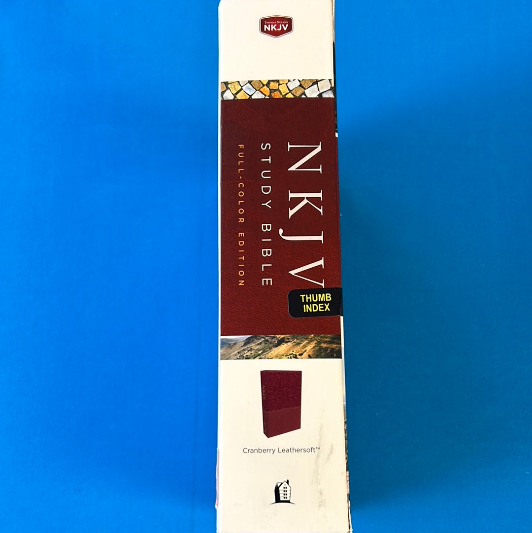 Indulge in the lavish and exquisite NKJV Study Bible Full Color Edition, adorned in luxurious cranberry leather soft material with full color illustrations. Measuring at a desirable 61/2x 91/2 inches, this bible exudes elegance and sophistication, making it a must-have for those seeking the finest in religious literature.