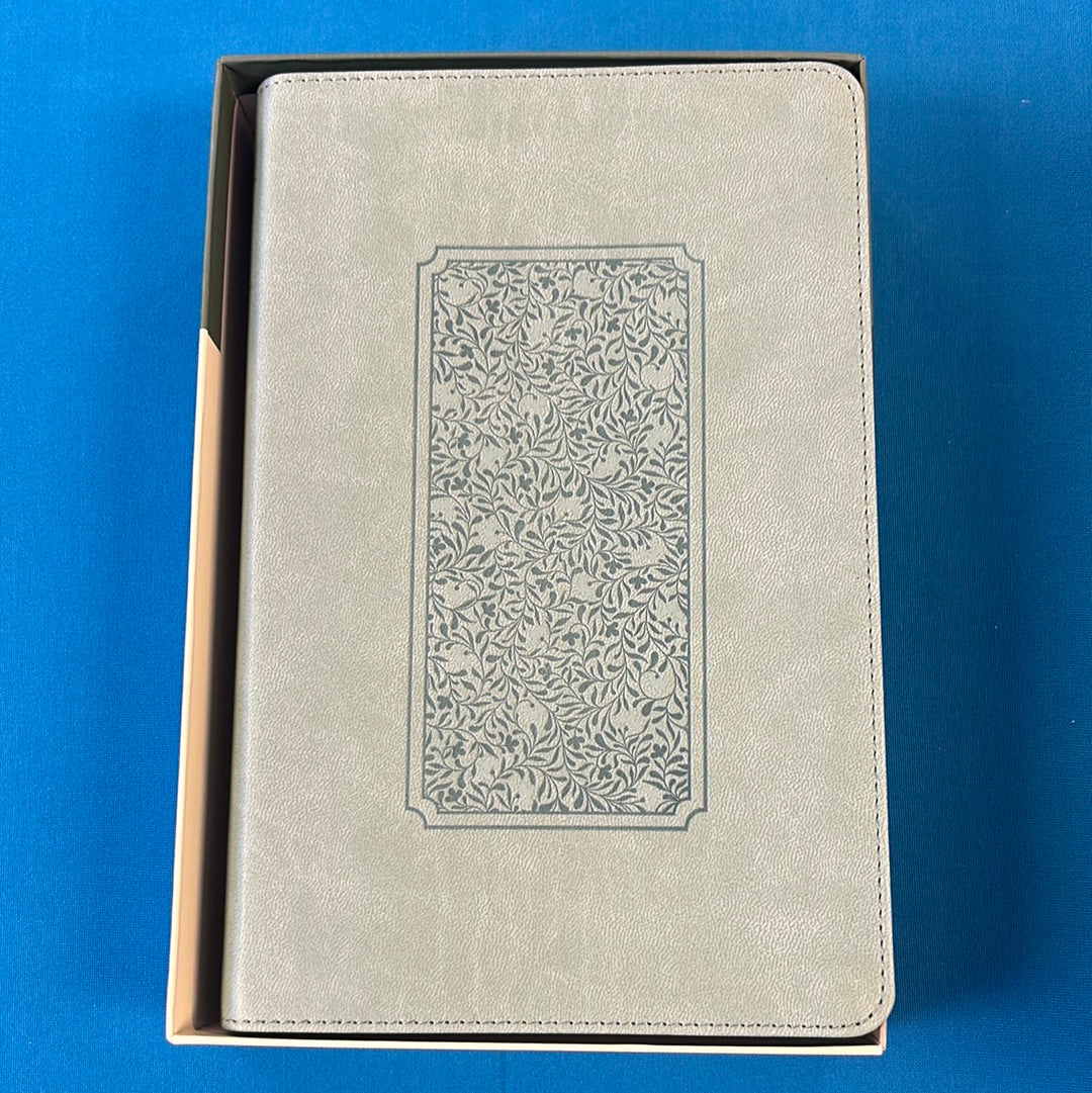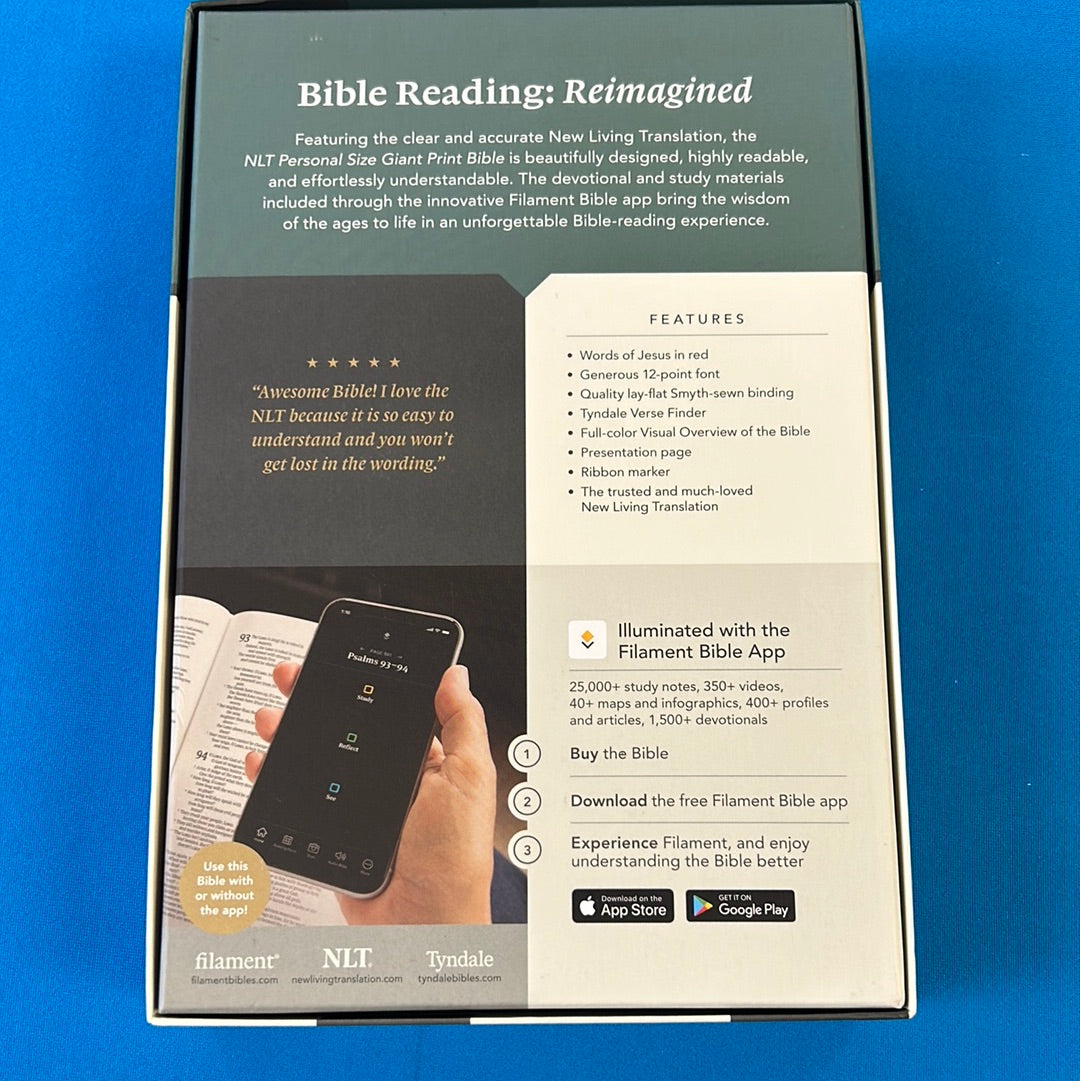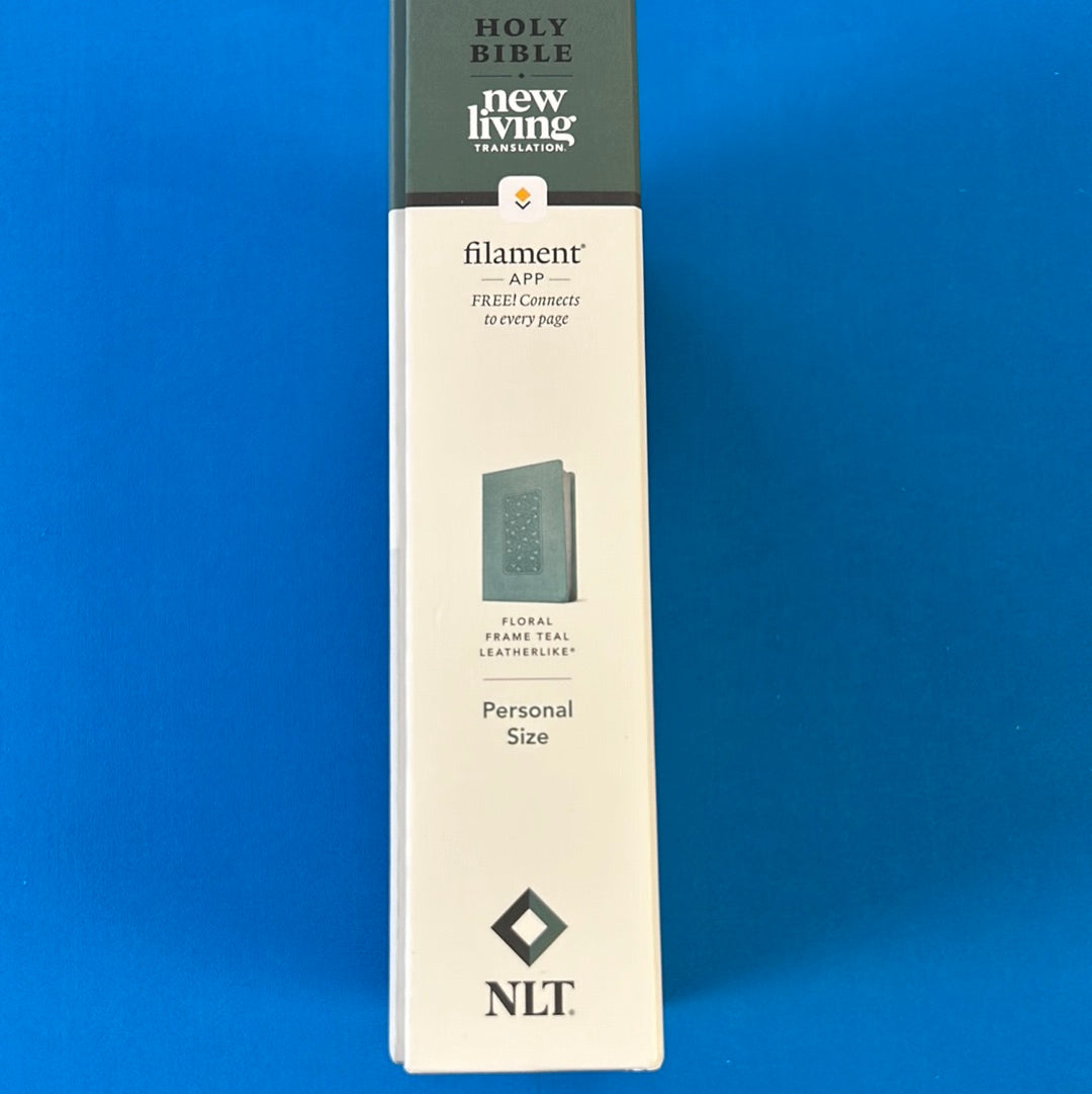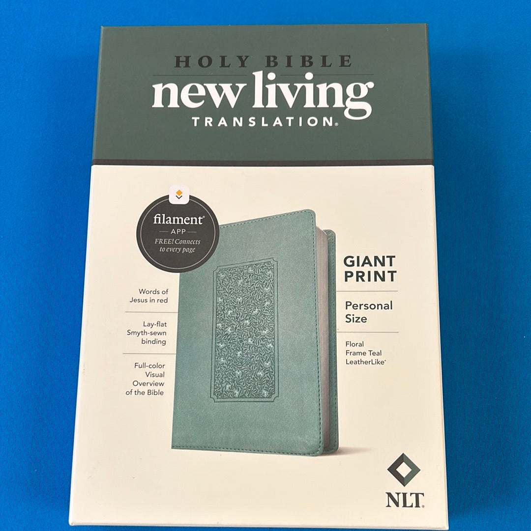 This luxurious and exclusive NLT Giant Print Personal Size comes in a sleek floral frame Teal leather-like material, measuring 51/2 x 9 inches.