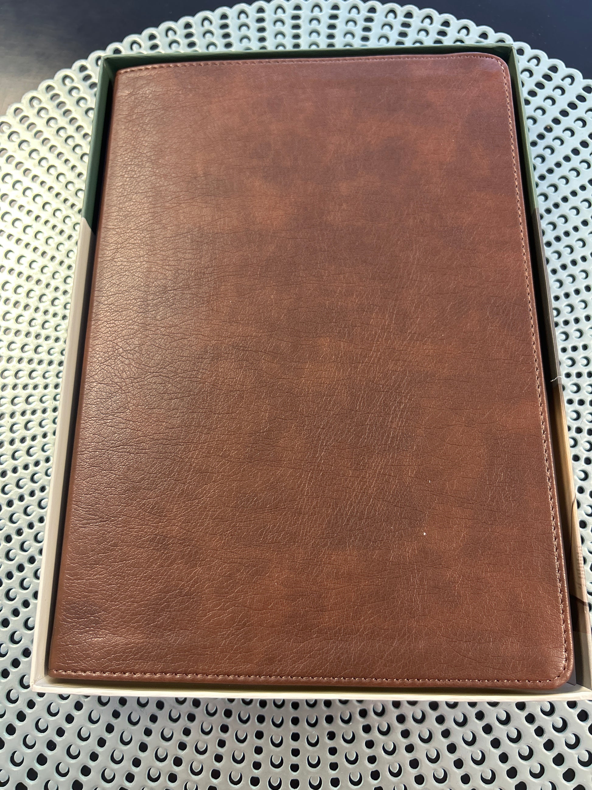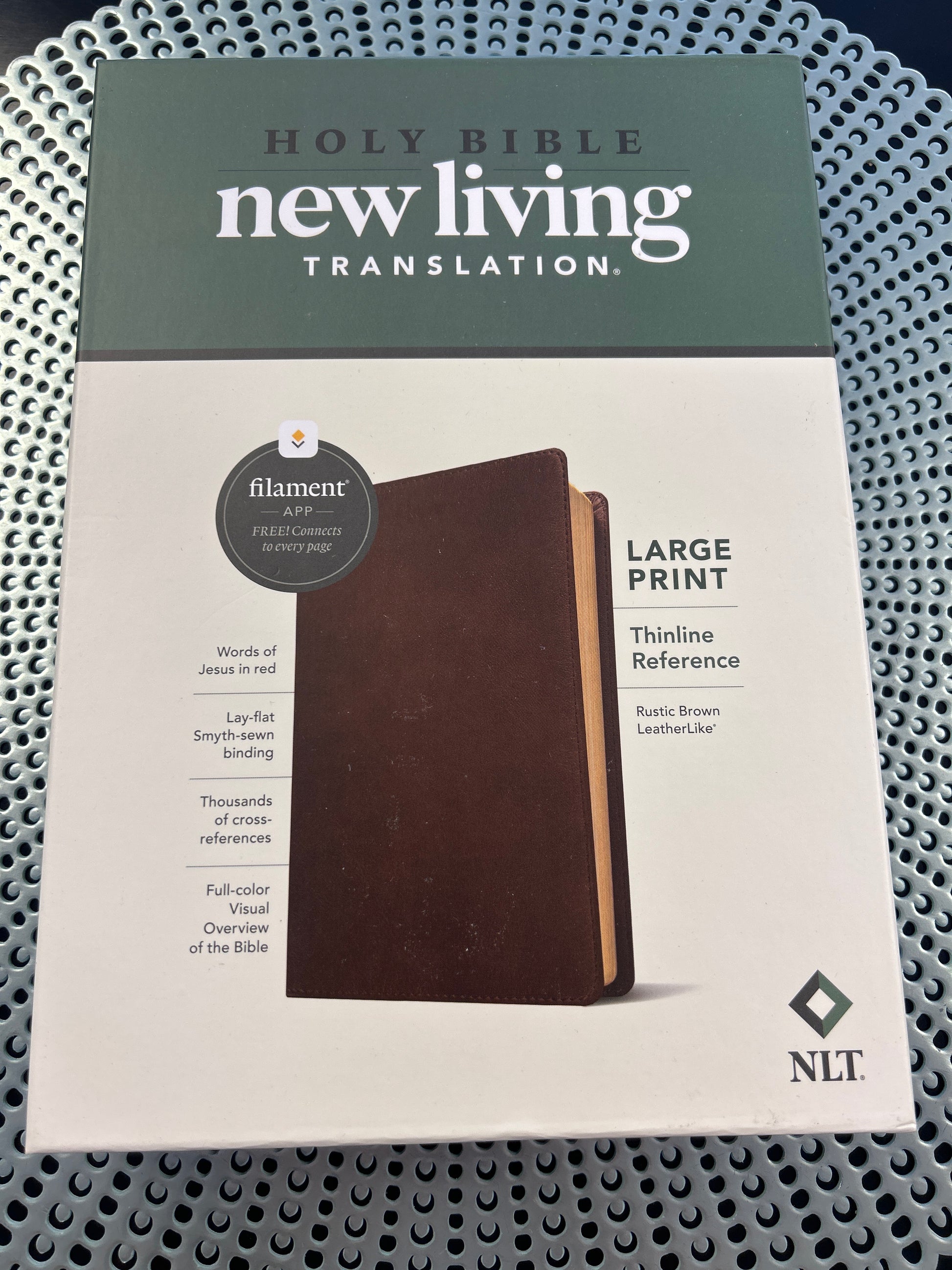 Expertly crafted with a rustic brown leather-like cover, this NLT Holy Bible features large print and a thin design for easy reading and transport. Measuring 7.25 x 10.25 inches, it's the perfect companion for your spiritual journey.