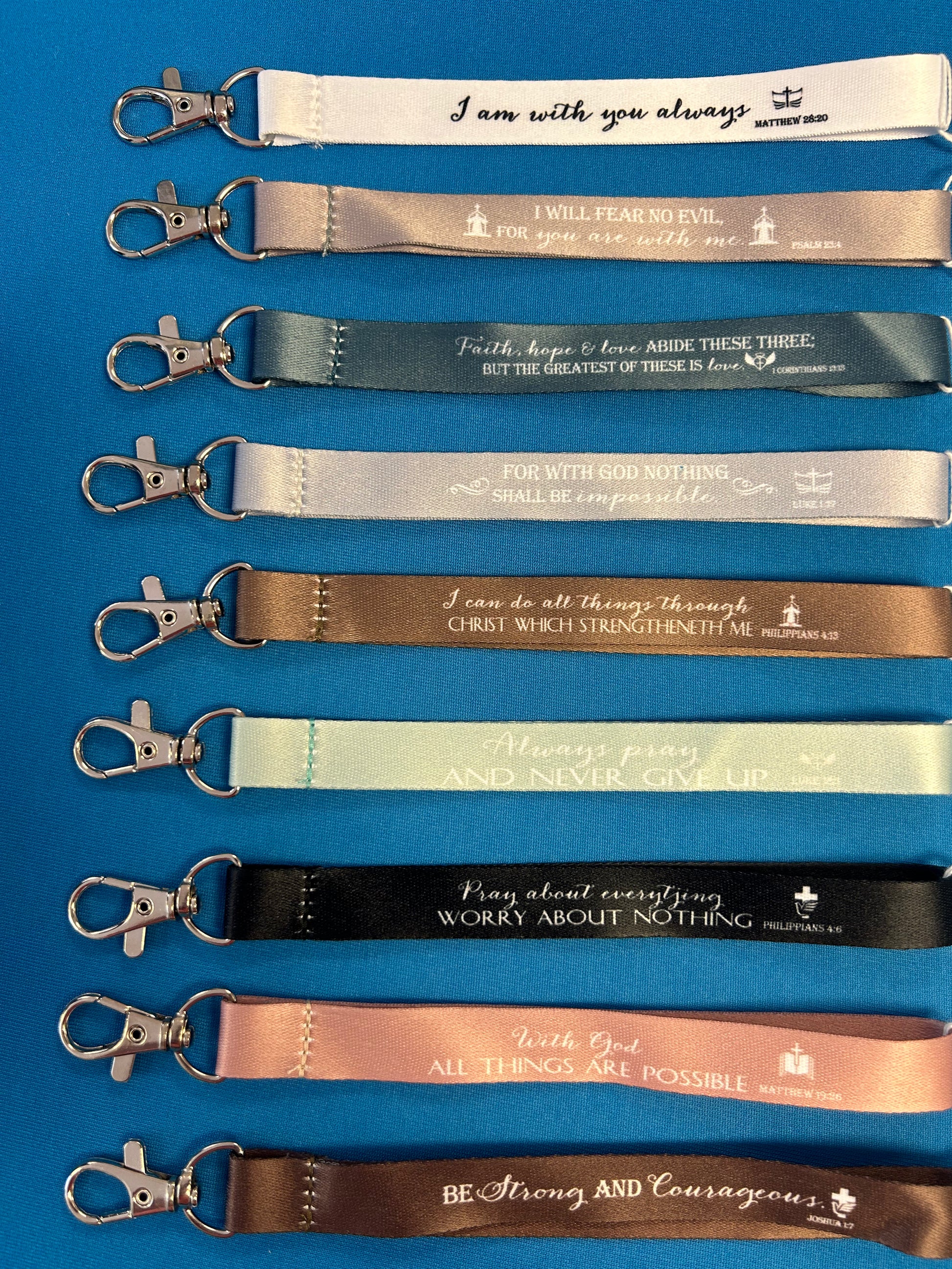 Carry daily inspiration with you wherever you go with our Scripture Wristlet Keychains, featuring all your favorite scriptures!