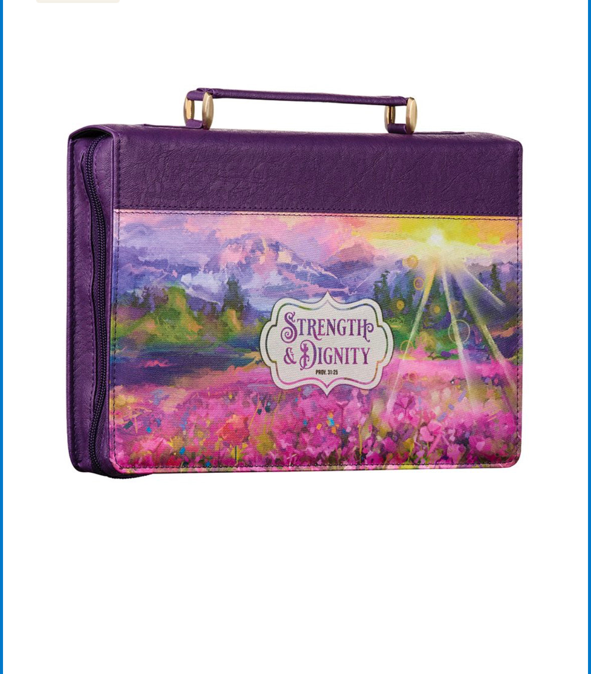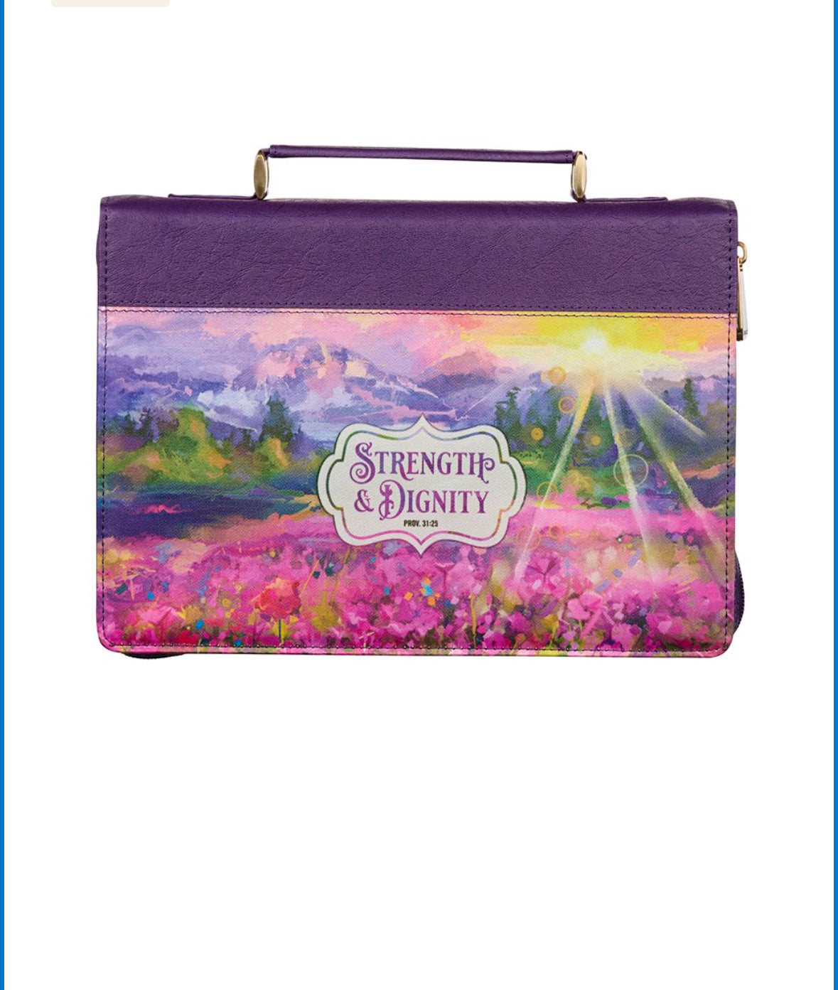 Bible cover in purple faux leather, designed for her with full color landscape artwork cover