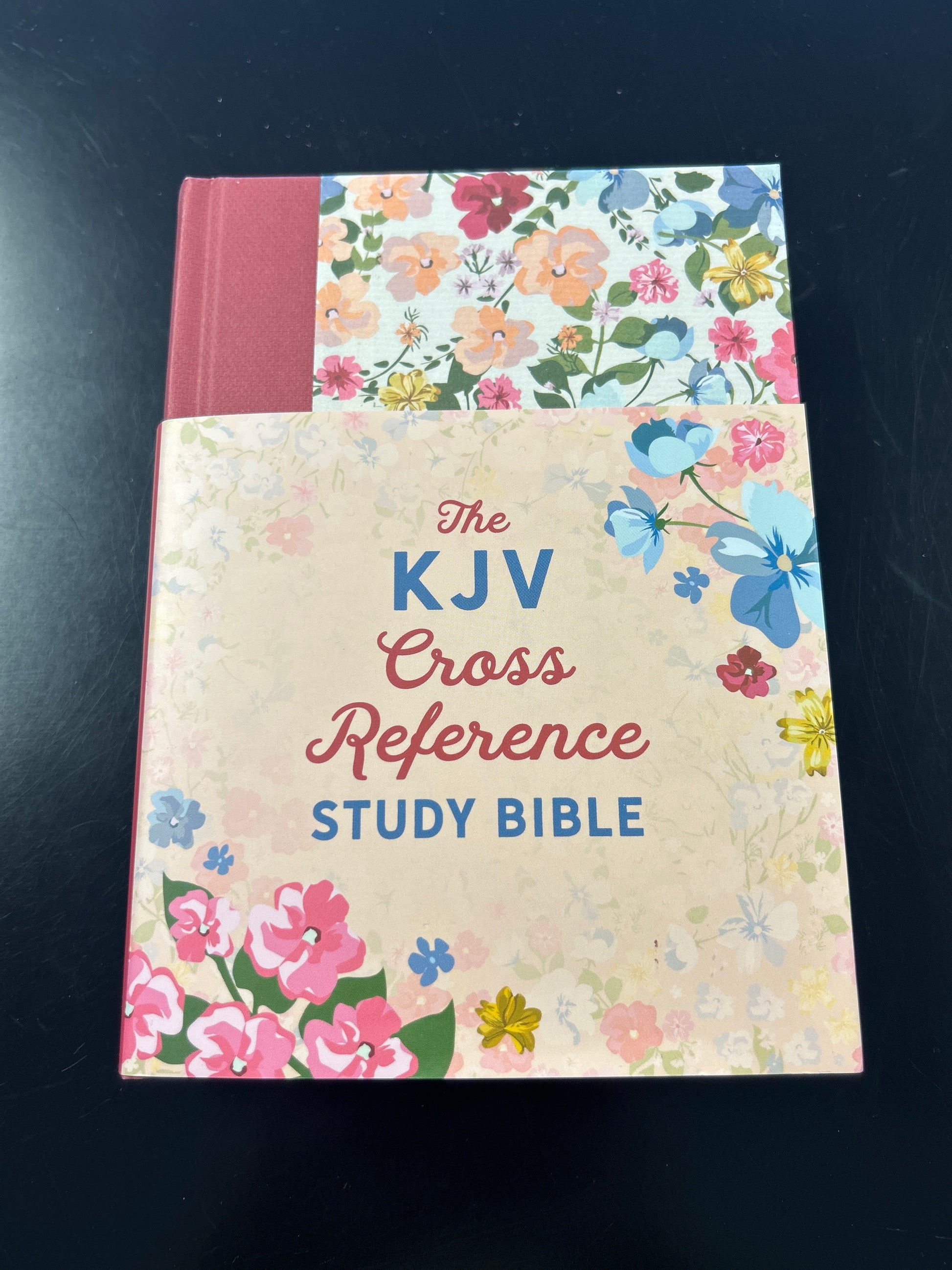 Indulge in the exquisite The KJV Cross Reference Study Bible, encased in a luxurious hard cover, with dimensions of 5.5 x 7.25 inches.