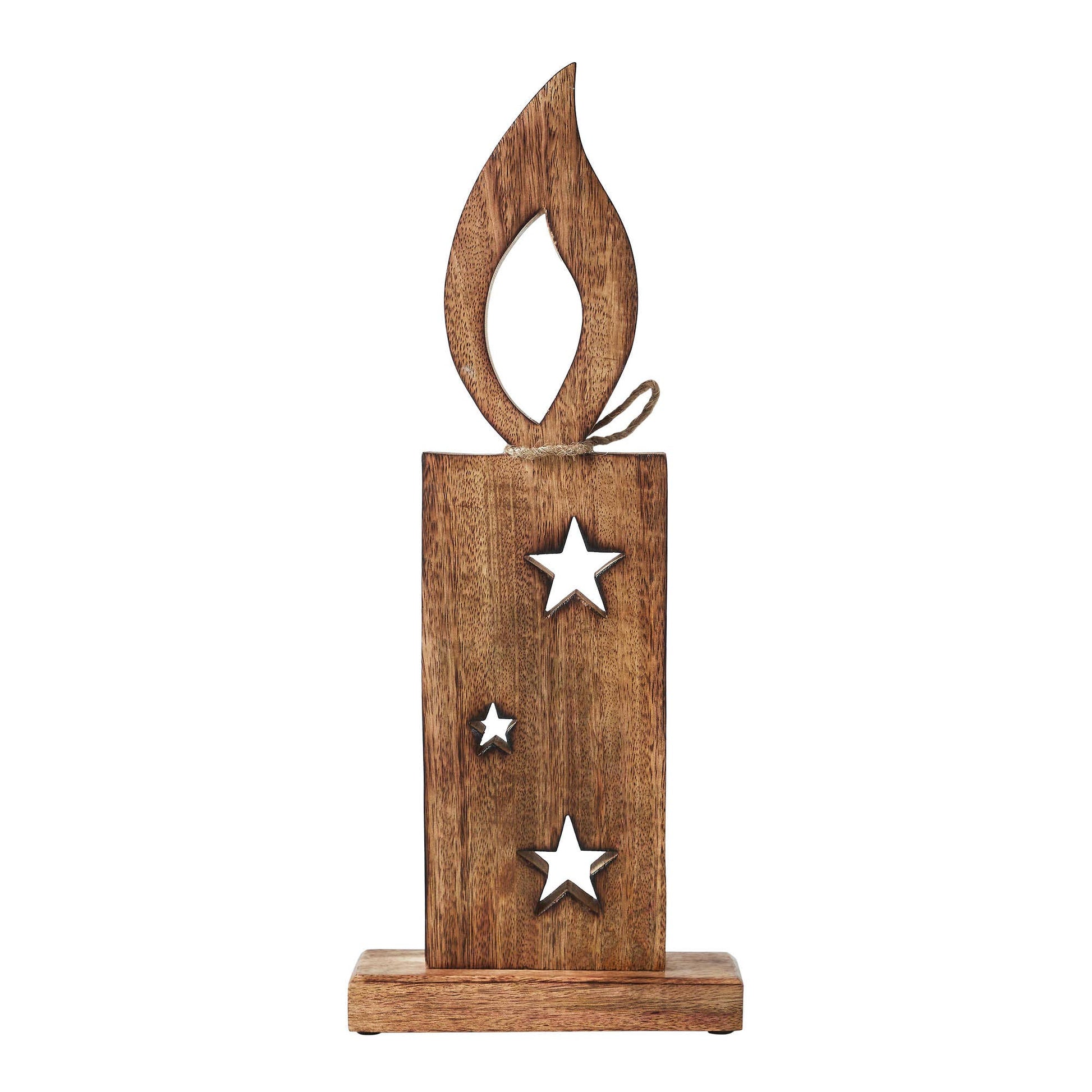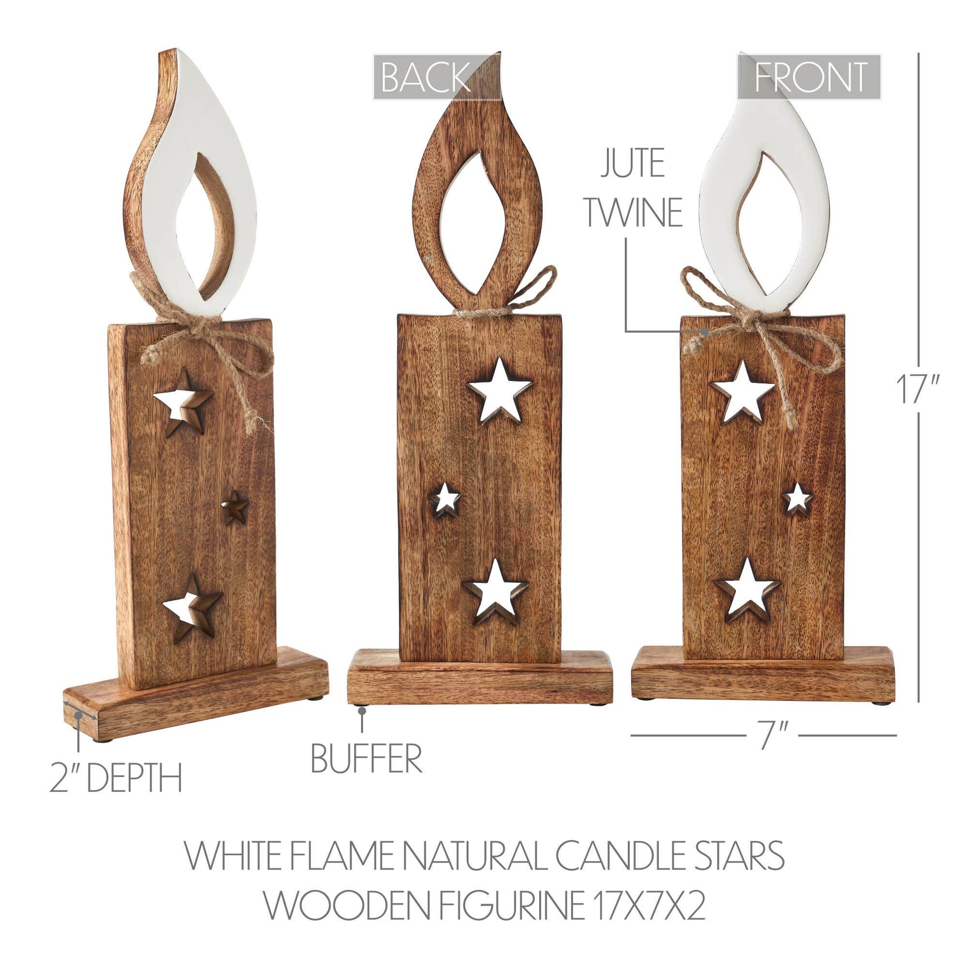 White Flame Natural Candle w/ Stars Wooden Figurine 17x7x2